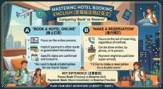 現在出國旅遊或國內旅行,大多數人都習慣透過網站或 App 訂房,不過在英文裡,「線上訂房」其實有好幾種常見說法,例如book a hotel online、make a reservation 或 reserve a room,不同情境下使用的字詞也會稍微不 ...